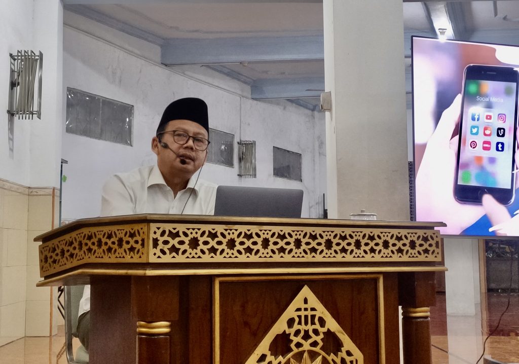 Dalam penyampaiannya, ditegaskan bahwa teknologi sejatinya hanyalah alat, bukan tujuan hidup. Jamaah diingatkan pada firman Allah yang bermakna, “Aku tidak menciptakan manusia melainkan untuk beribadah kepada-Ku,” serta peringatan agar kehidupan dunia tidak melalaikan dari mengingat Allah. Pesan ini dipertegas dengan sabda Rasulullah ﷺ yang artinya, “Di antara kebaikan Islam seseorang adalah meninggalkan hal-hal yang tidak bermanfaat baginya,” sebagai pengingat agar umat bijak menyaring konten dan penggunaan media digital.