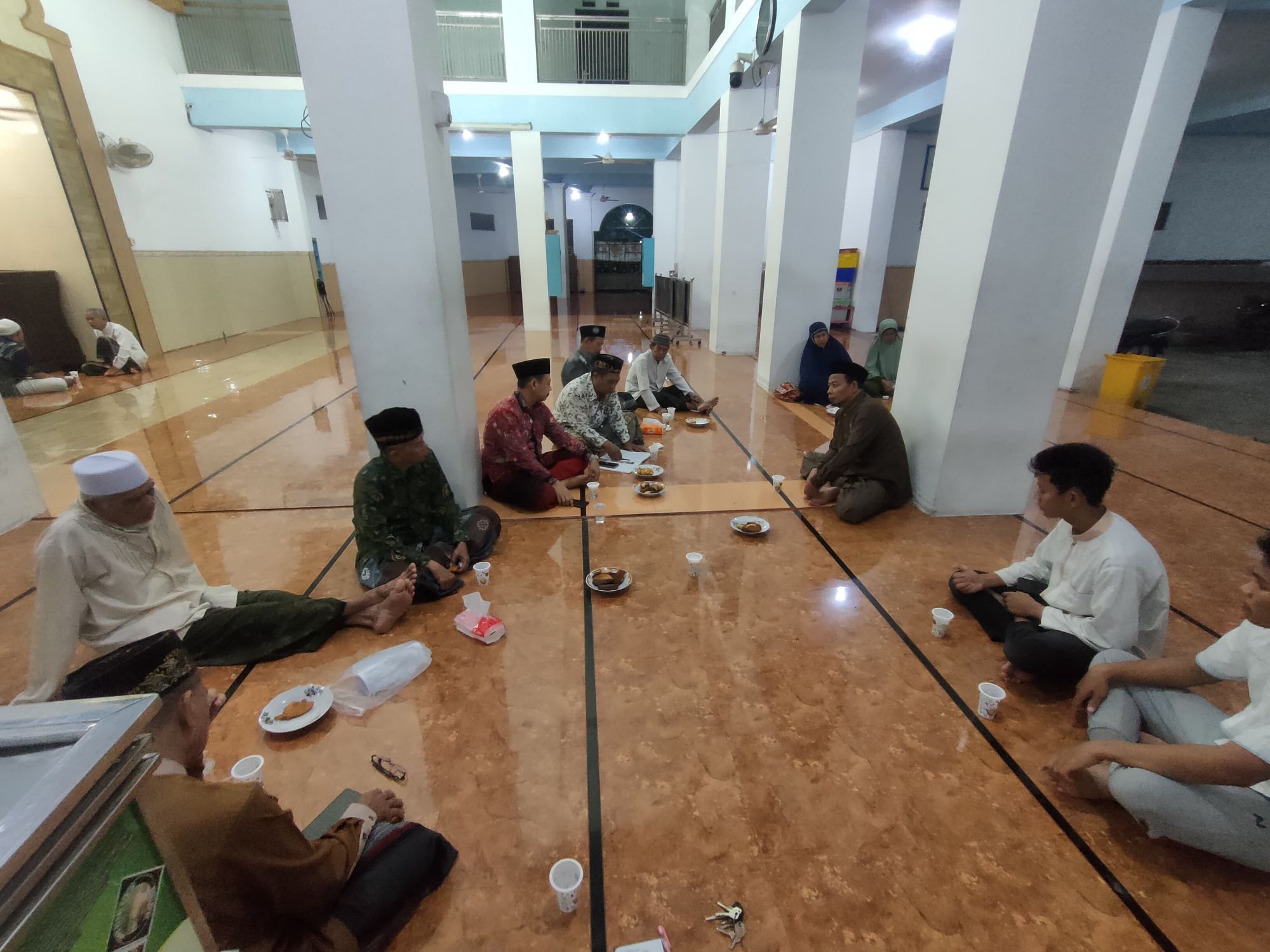 Sambil ngopi bareng ustad Arifin mengajak kepada para semua pengurus takmir untuk tidak bosan-bosannya meluangkan waktu sebagai pengurus untuk berpikir kemakmuran masjid. Apalagi kita saat ini punya amanah untuk menyelesaikan dua bidang tanah yang barusan dibeli untuk pengembangan masjid kedepannya.