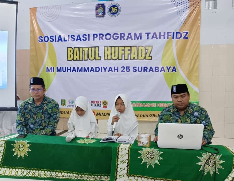 LENSADAKWAH.COM – Baitul Huffadh MI Muhammadiyah 25 Surabaya mensosialisasikan Program tahfidh di awal semester ganjil dilaksanakan di kampus MIM 25 Surabaya Kamis, 01/08/2014 di jalan Sidotopo Wetan 1 Dalam No. 18 Surabaya mengundang wali santri sebanyak 100 yang mengikuti Program Tahfidh pada acara sosialisasi seluruh petugas mulai pembawa acara, Qori’ dan sari tilawah, Mars Tahfidh, sambutan kepala madrasah, sosialisasi program Tahfidh dan do’a penutup penampilan santri sangat memukau luar biasa semangatnya dengan tampil sangat maksimal.