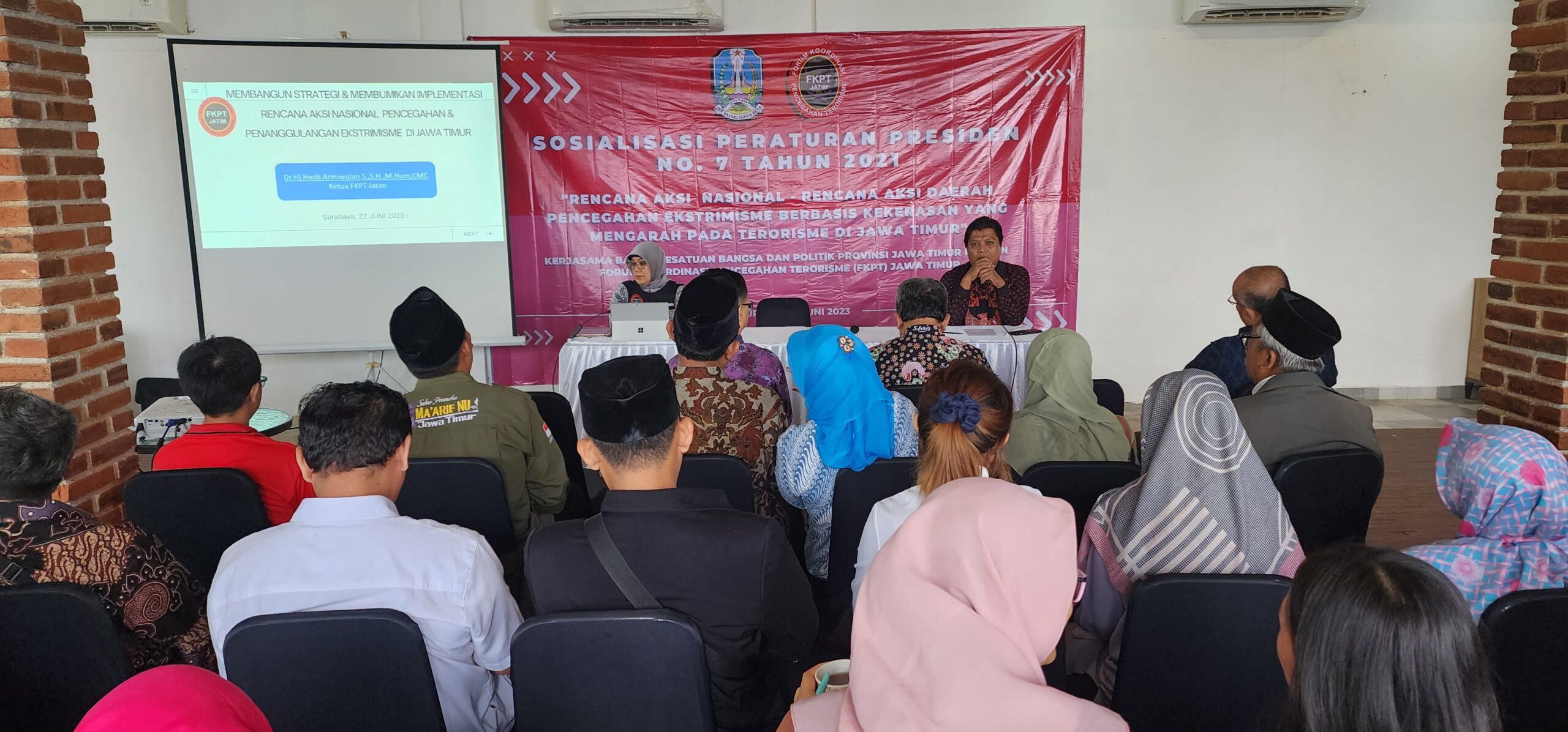 Lensadakwah.com – Forum Koordonasi Pencegahan Terorisme (FKPT) Jawa Timur selenggarakan sosialisasi peraturan presiden No. 7 Tahun 2021. Acara yang diselenggarakan di ruang rapat tepatnya di tam...