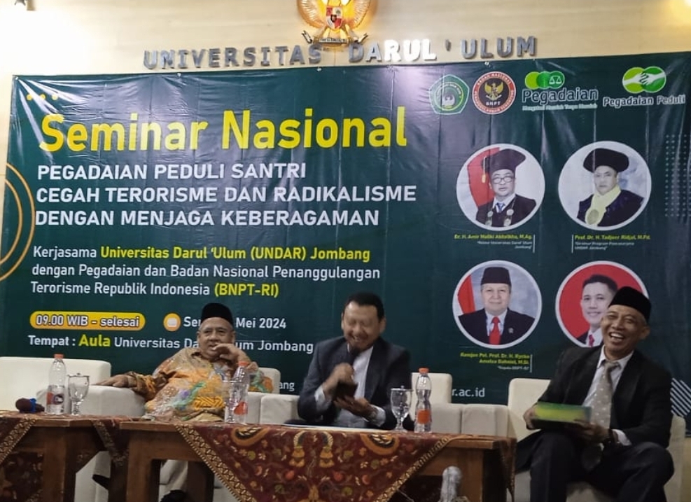 Universitas Darul ‘Ulum Jombang selenggarakan seminar Pegadaian Peduli Santri Cegah Terorisme dan Radikalisme dengan Menjaga Keberagaman. Senin, 13 Mei 2024. Dalam sambutannya Dr. Amir Maliki Ab...